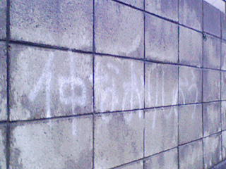 壁に字が書かれてる.