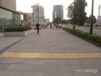 黄色い視覚障害者誘導用ブロックが見る人によっては仕切り線にもスタートラインにも見えないかい?